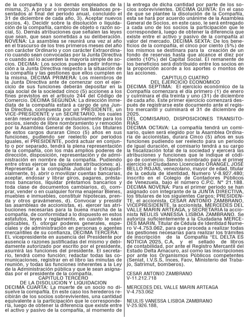 PUBLICACIONESActa constitutiva y estatutos sociales de El Delta es Noticia 2025, C.A. Mercedes Marín9 meses atrás9 meses atrás01 minutos Navegación de entradas Anterior: Conflictos de competencia: Un obstáculo para la justicia en casos de violencia contra la mujerSiguiente: No me hables del dolor de tu preso; ¡Es tu preso! Deja una respuesta Cancelar la respuestaTu dirección de correo electrónico no será publicada. Los campos obligatorios están marcados con *Comentario * Nombre * Correo electrónico * Web Guarda mi nombre, correo electrónico y web en este navegador para la próxima vez que comente. Δ