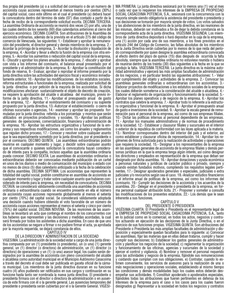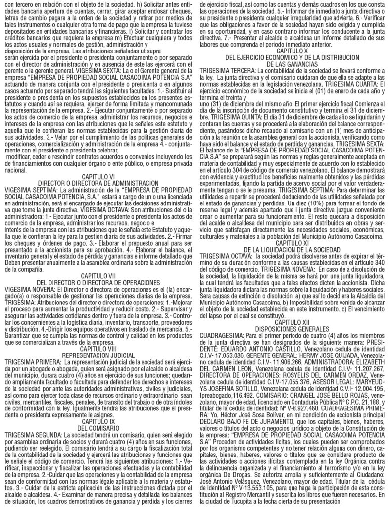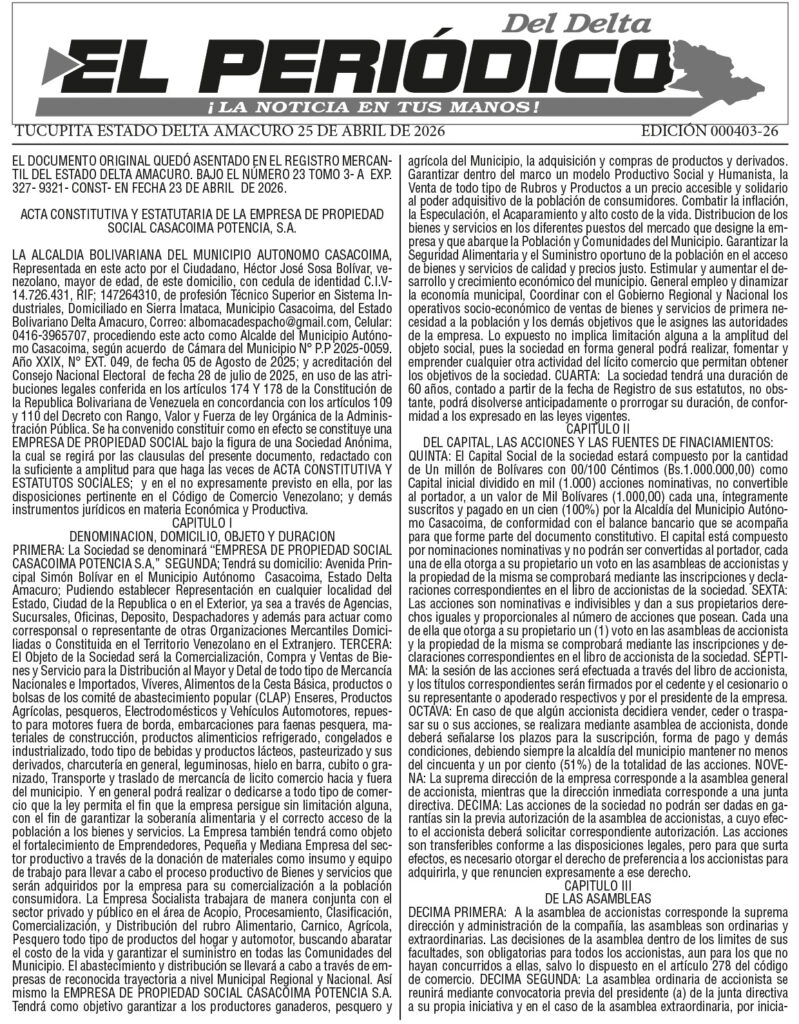PUBLICACIONESActa constitutiva y estatutaria de la empresa de propiedad social Casacoima Potencia, S.A. REDACCION1 hora atrás01 minutos Navegación de entradas Anterior: CARTEL ÚNICO DE NOTIFICACIÓNSiguiente: María y Mohamed: El trono global frente al mito de Jesús Deja una respuesta Cancelar la respuestaTu dirección de correo electrónico no será publicada. Los campos obligatorios están marcados con *Comentario * Nombre * Correo electrónico * Web Guarda mi nombre, correo electrónico y web en este navegador para la próxima vez que comente. Δ